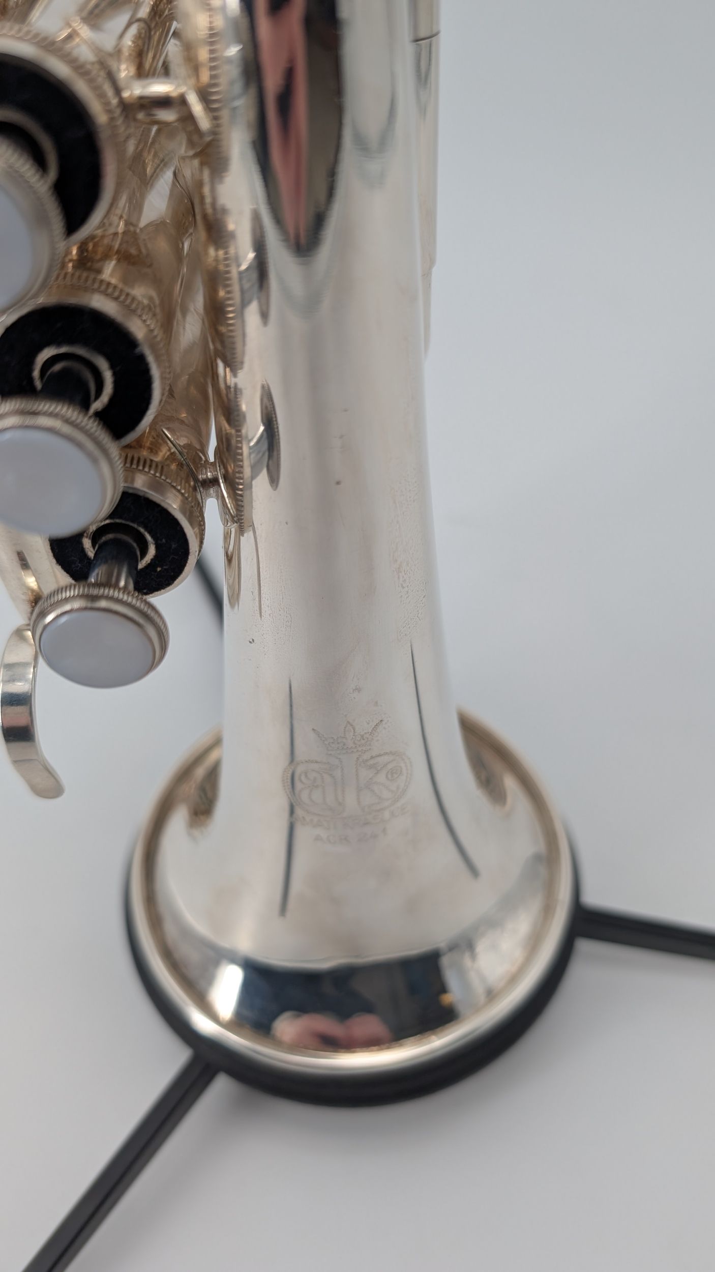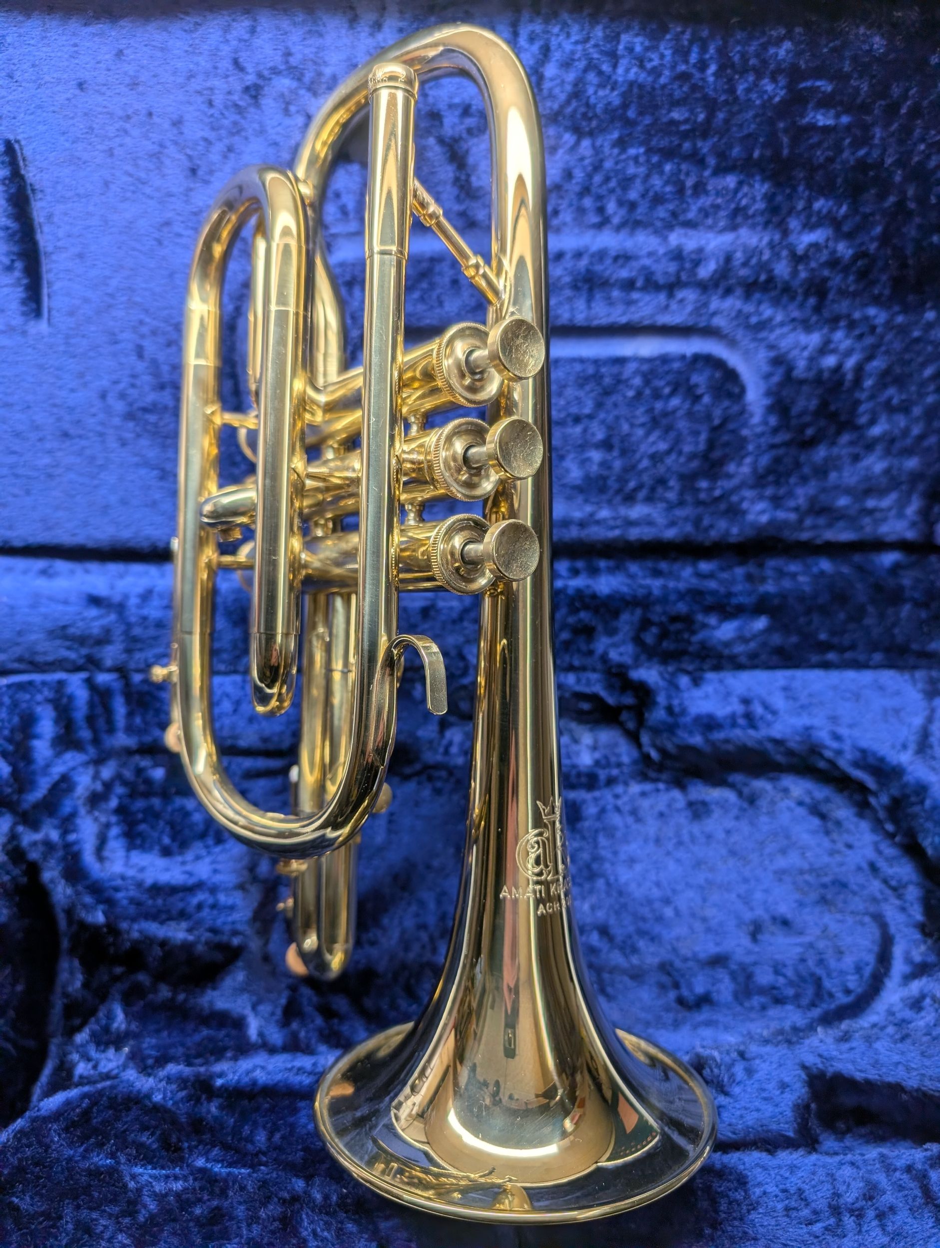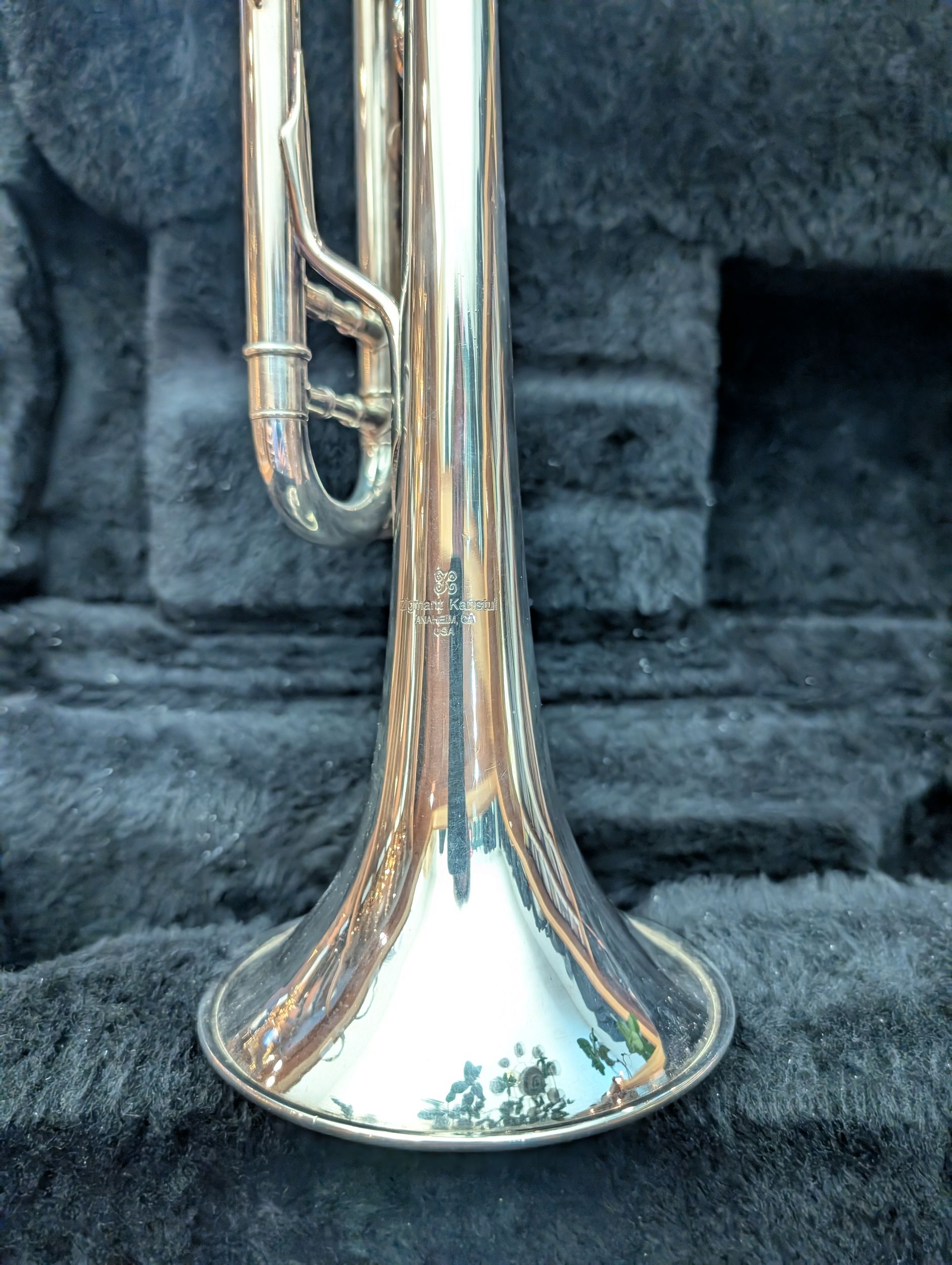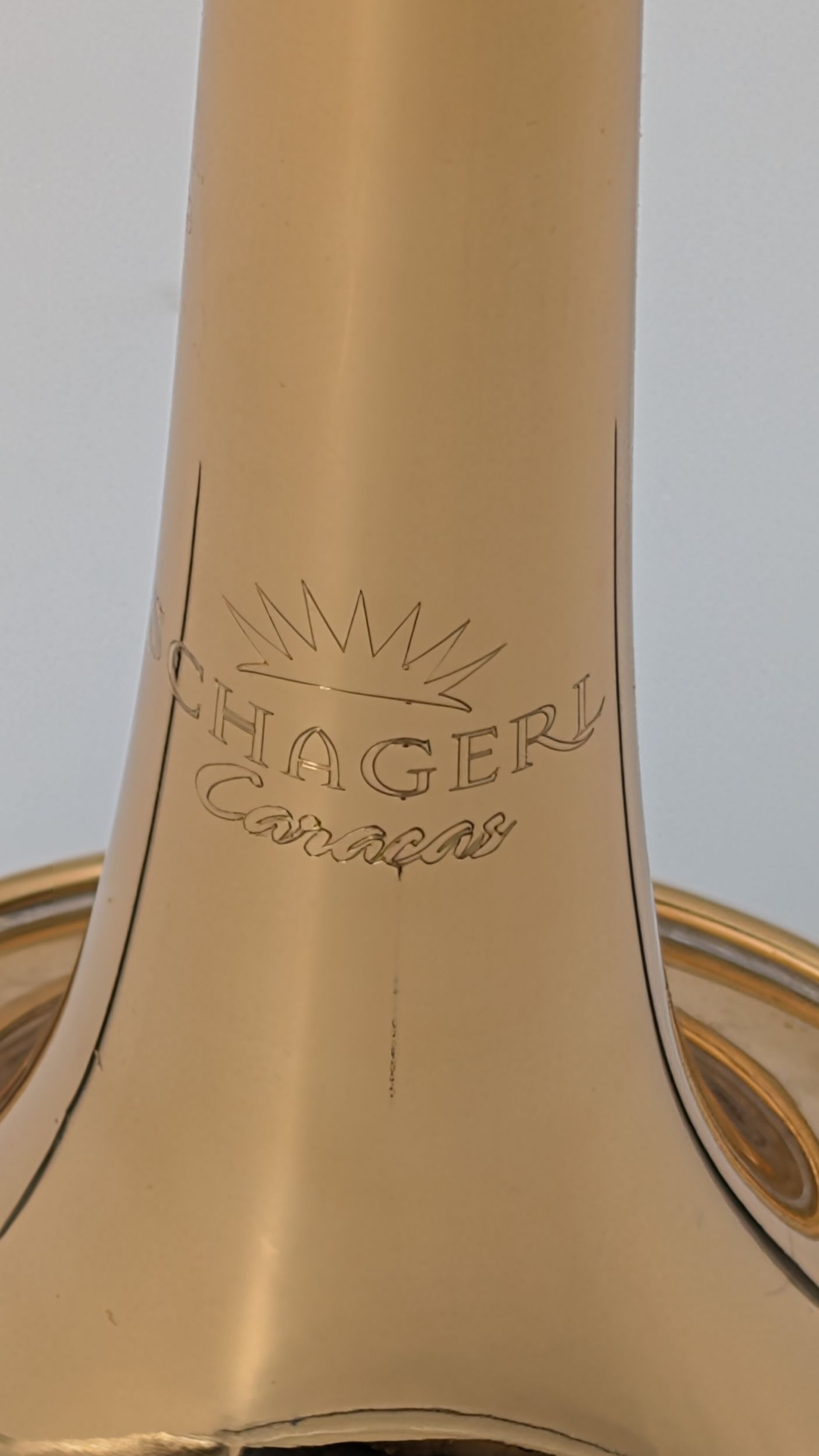 - einteiliges, handgehämmertes Ø 122,24 mm (4- 13/16”) Messing Schallstück mit flachem Becherrand
